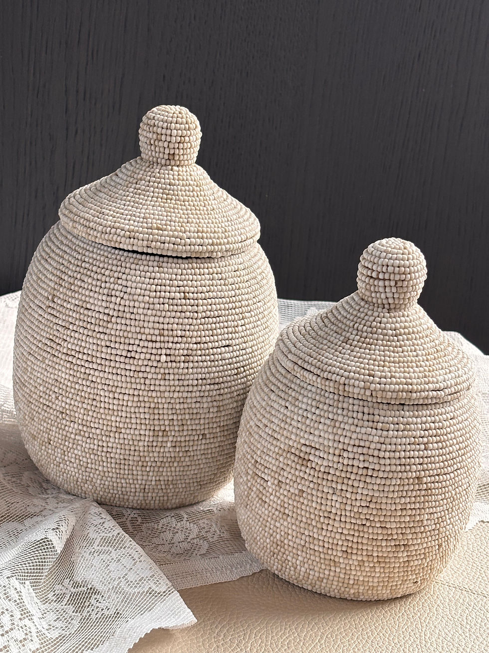 Prachtig op een dressoir, sidetable of in een open kast — en extra krachtig wanneer je verschillende maten samen stylet.