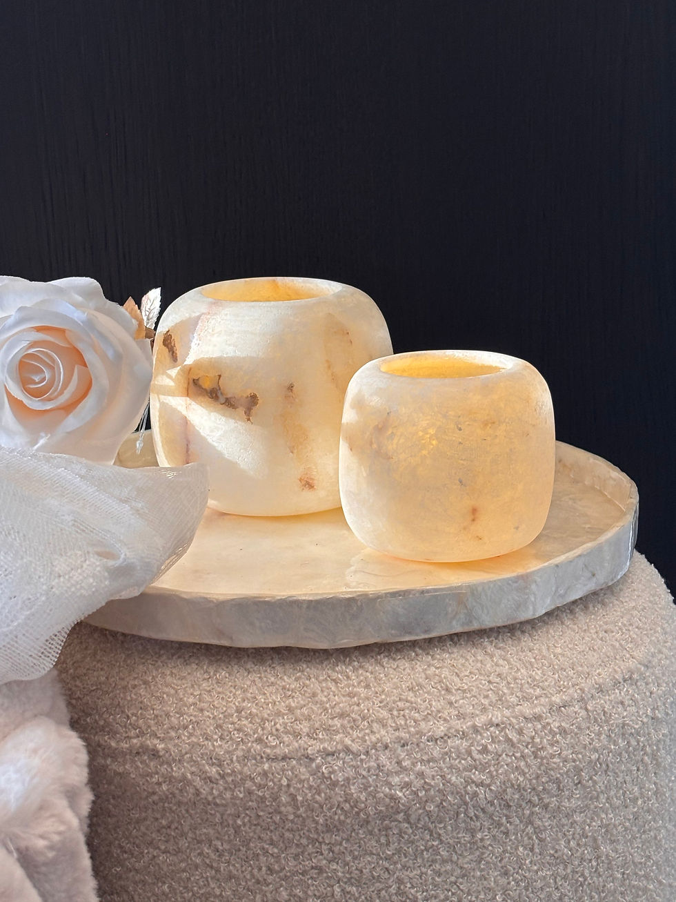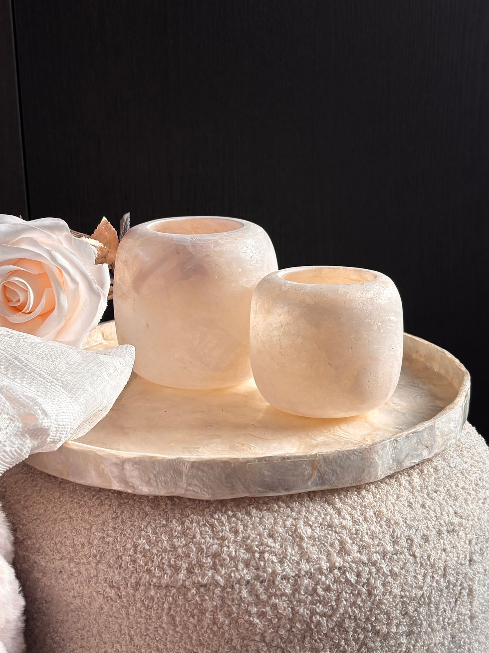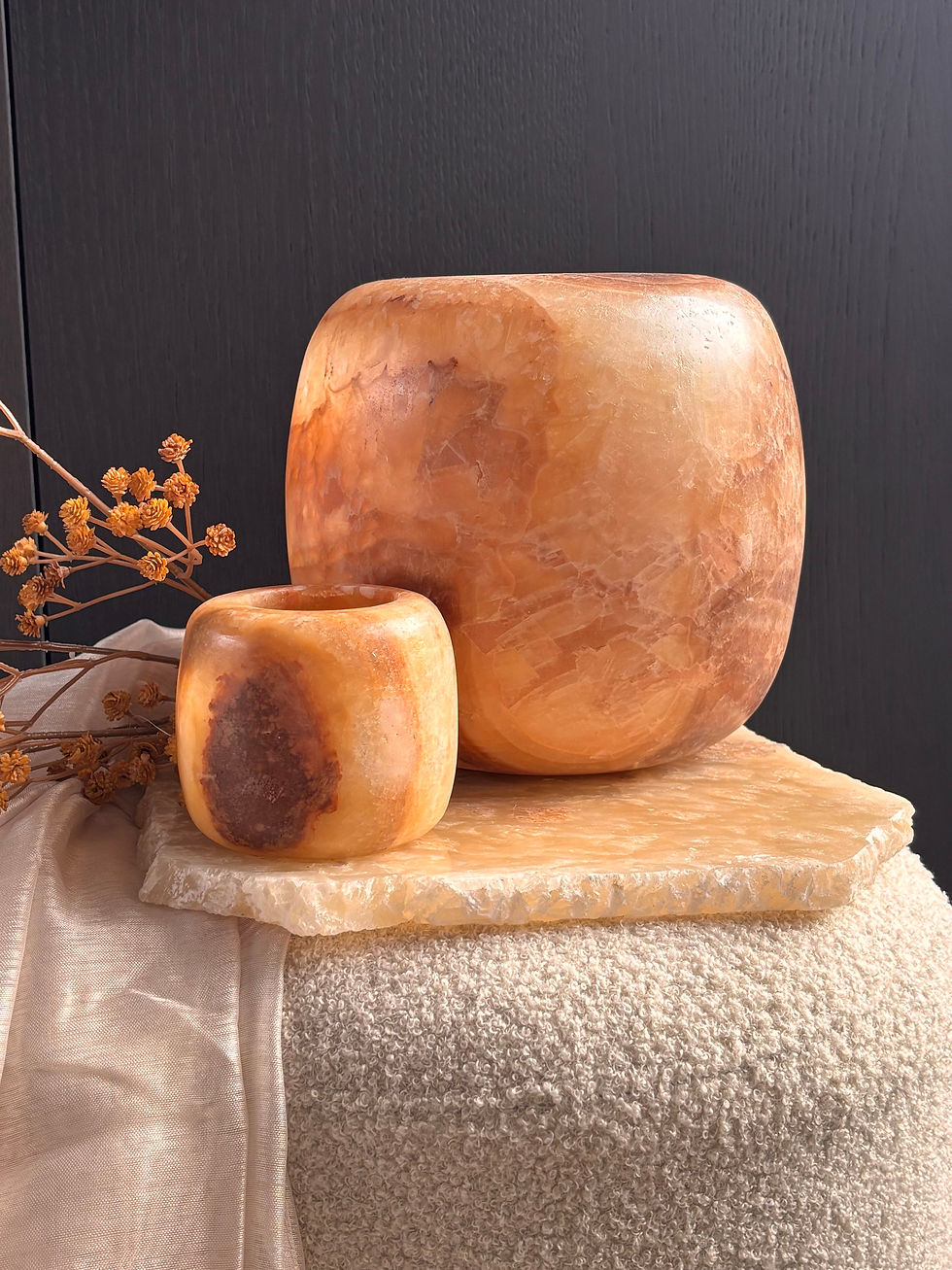 Met zijn handtasachtige vorm en verfijnde afwerking straalt dit stuk tijdloze luxe uit. Perfect voor interieurs die houden van natuurlijke elegantie en unieke, handgemaakte accessoires.